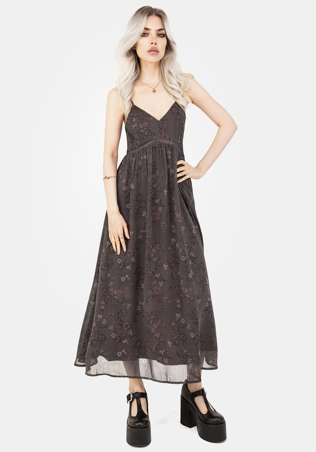 • Brown Floral Lace Insert Cami Midaxi Dress