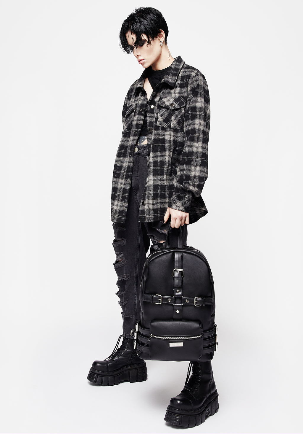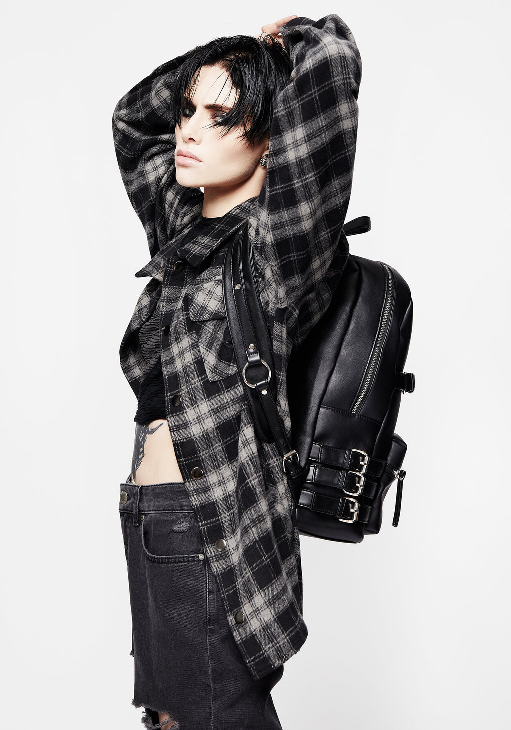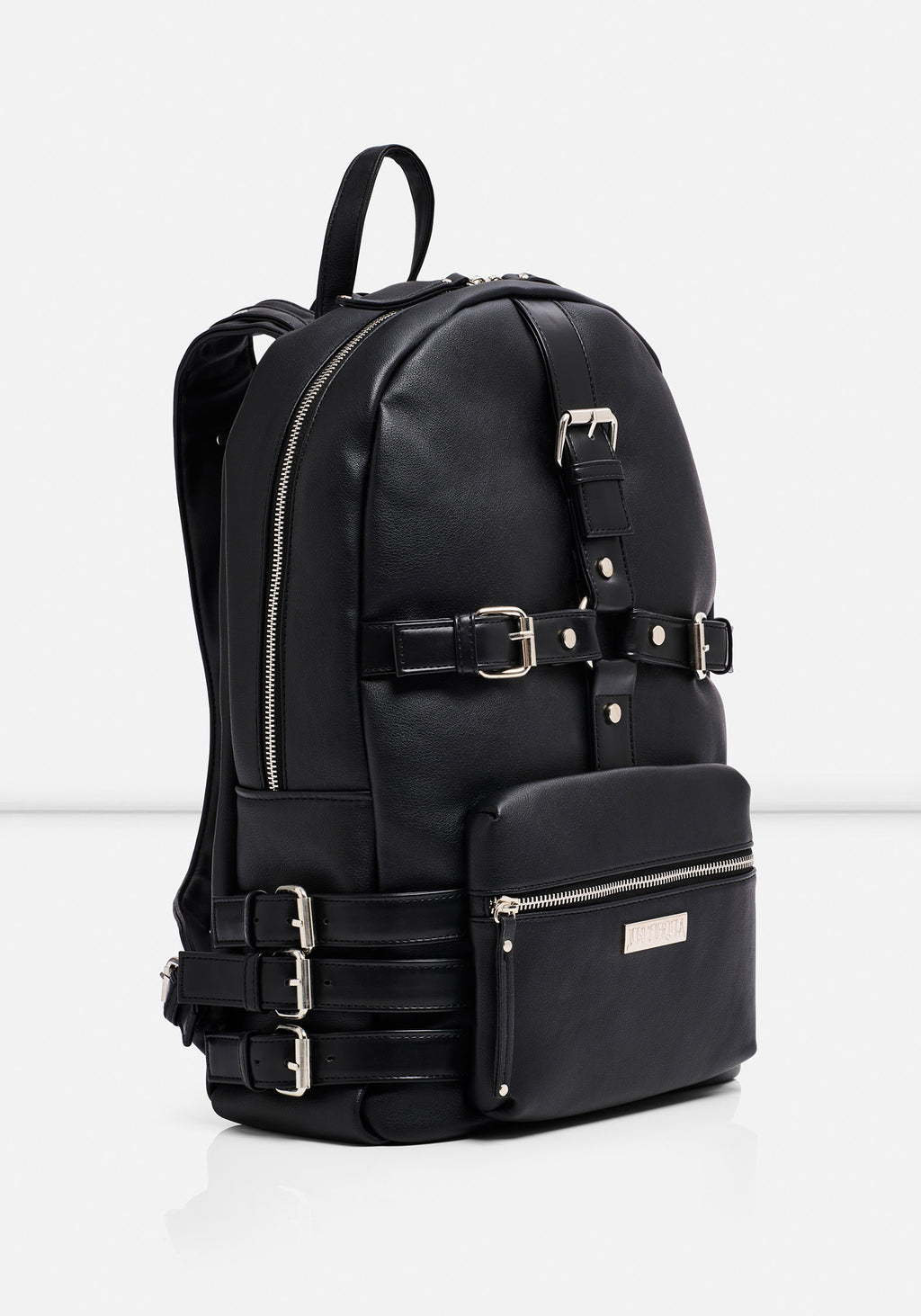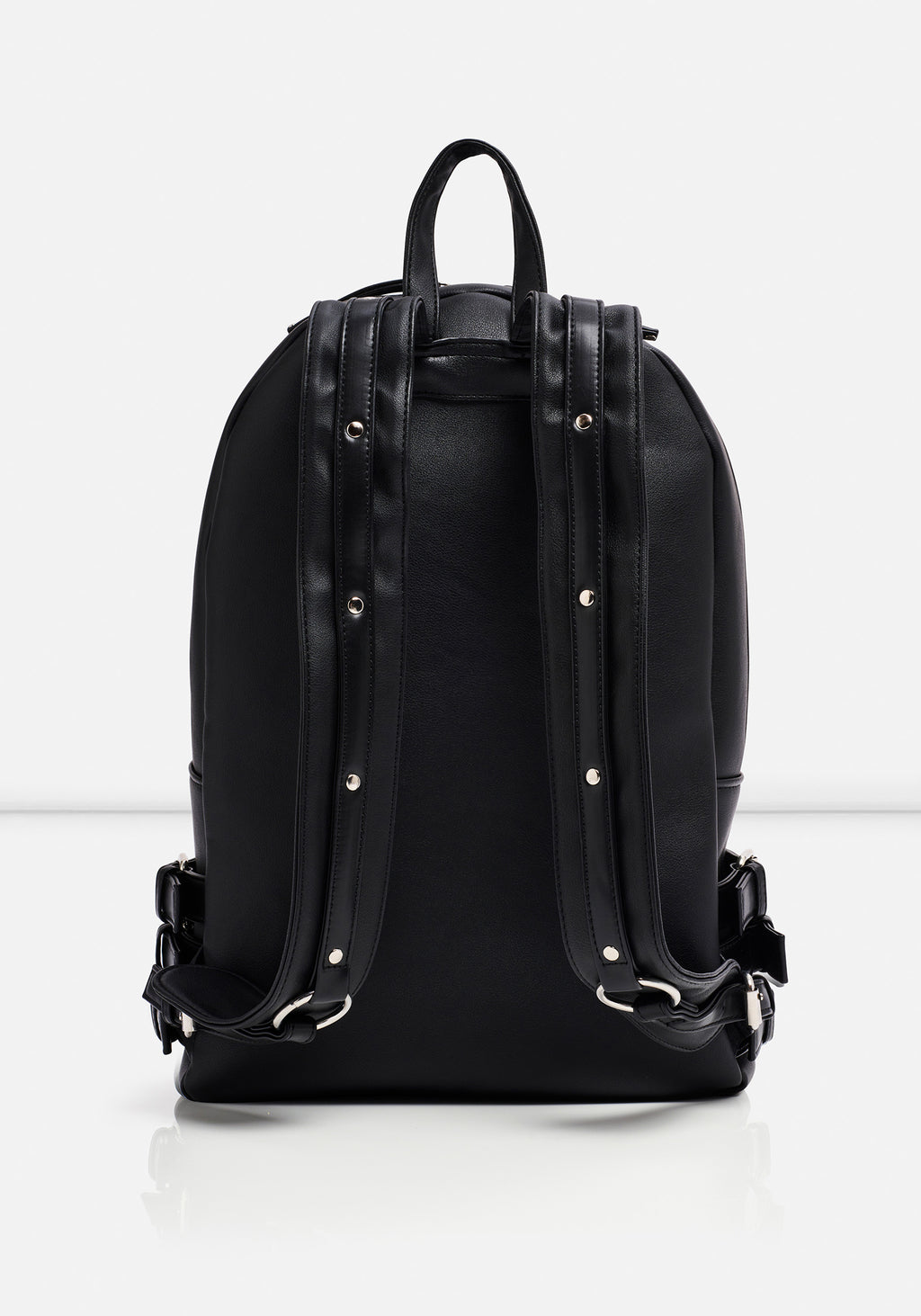 - Black faux leather backpack