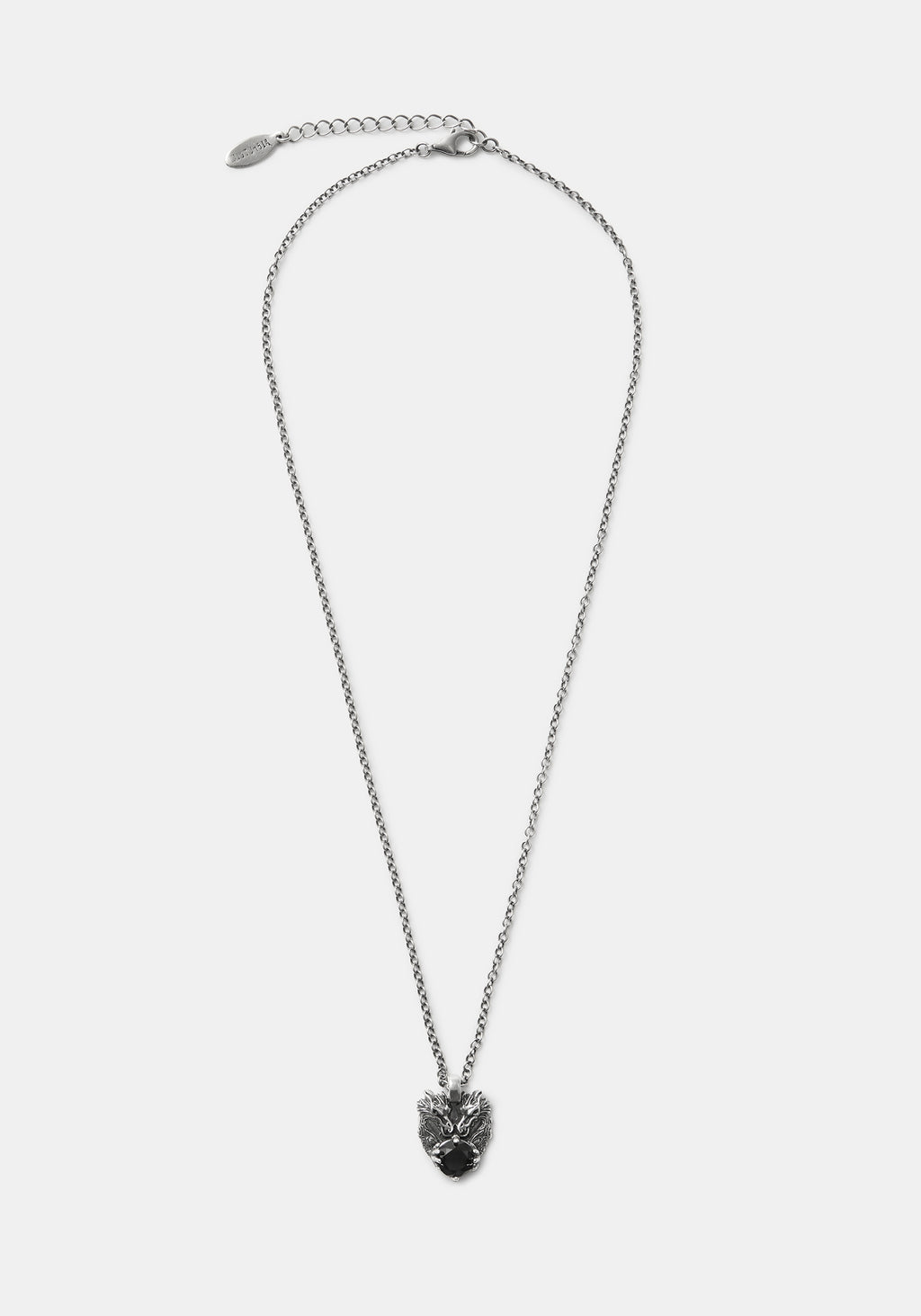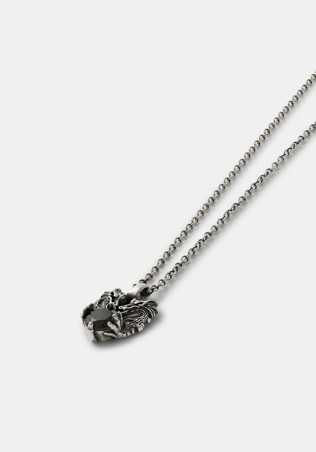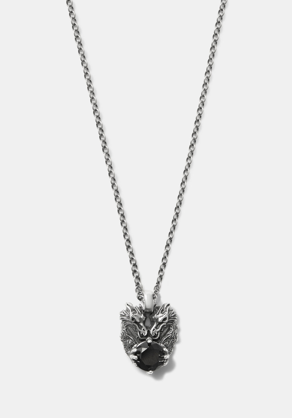 • Sterling Silver Necklace with Large Black Spinel & Dragon Details