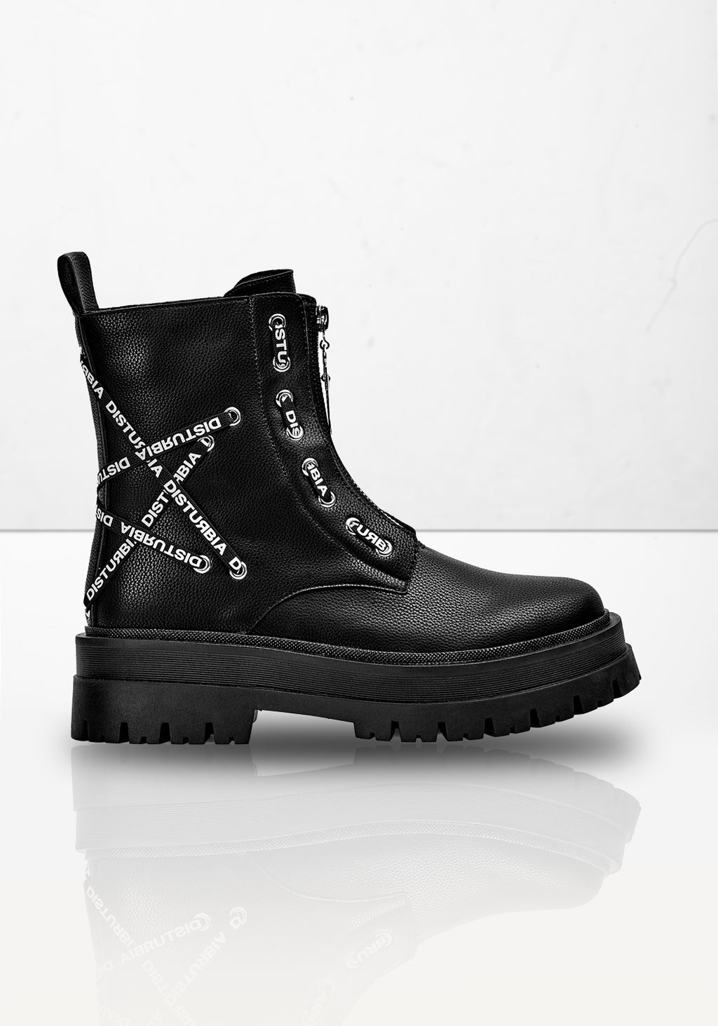 ✩ Zip-up black boots with mock lace detailing