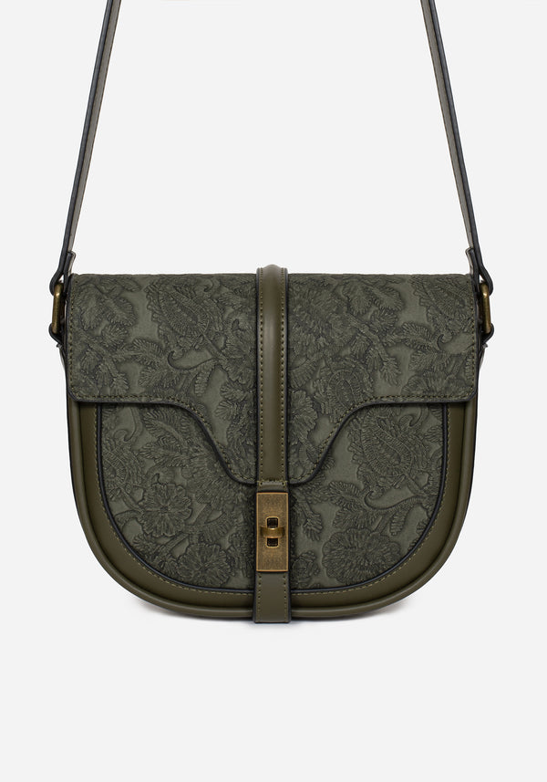 Rosamoth Buckle Vine Embroidered Satchel Bag - BlackRosamoth Buckle Vine Embroidered Satchel Bag - Black