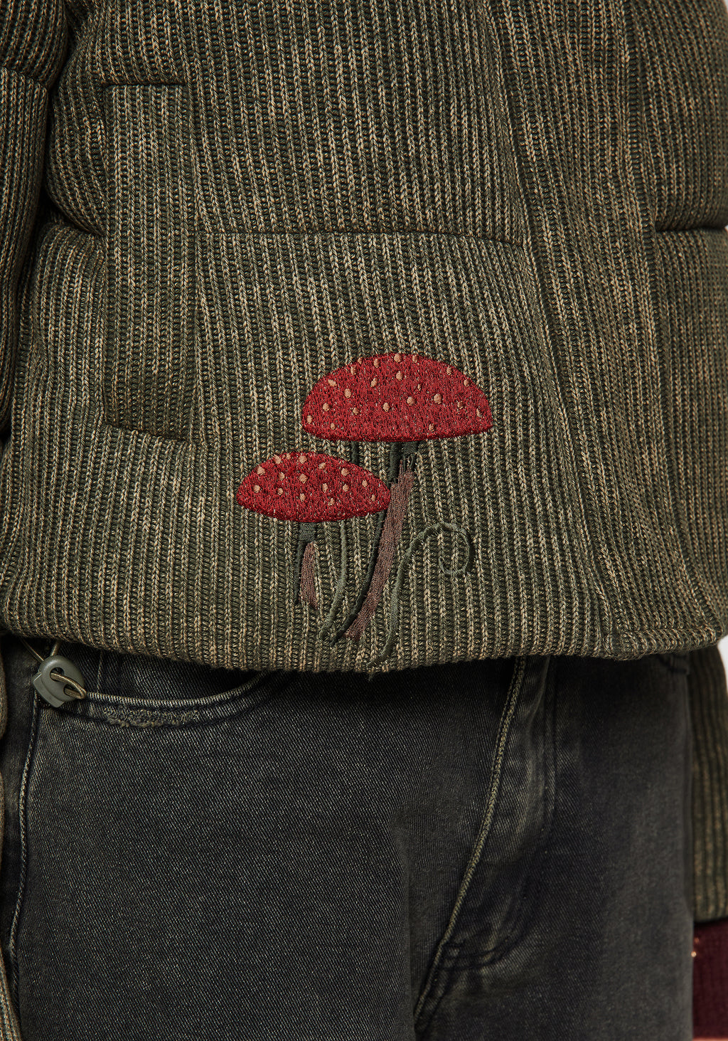 • Green Knitted Bomber Jacket