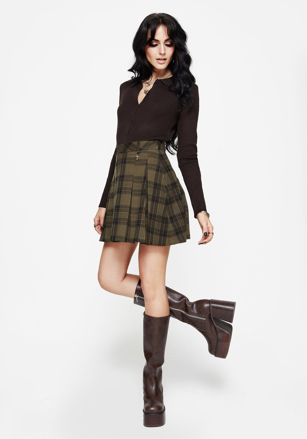 • Brown Floral Embroidered Ribbed Knit Cardigan