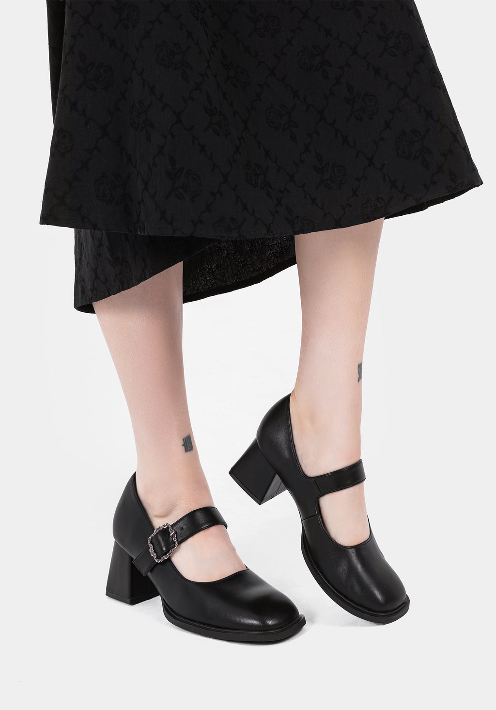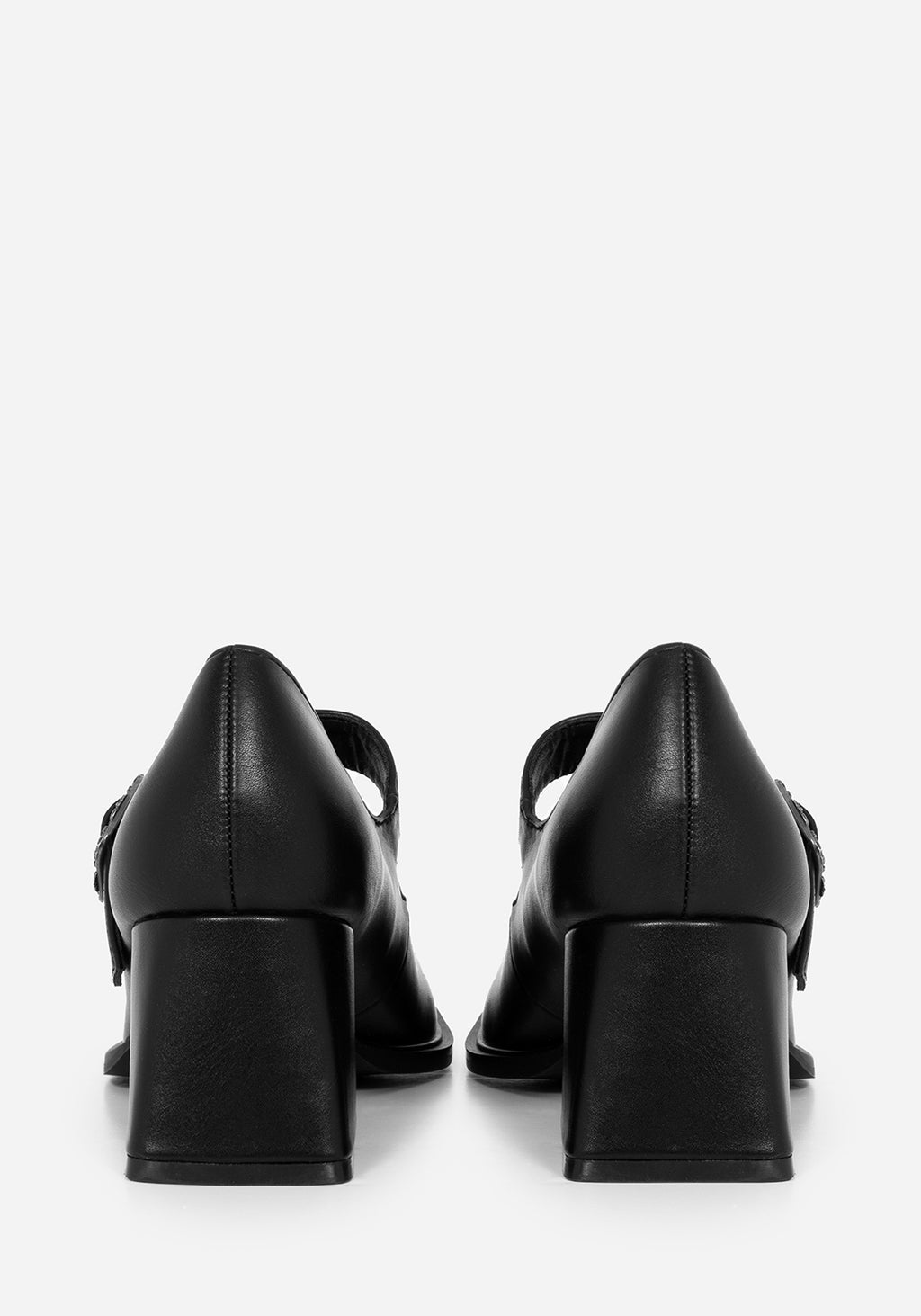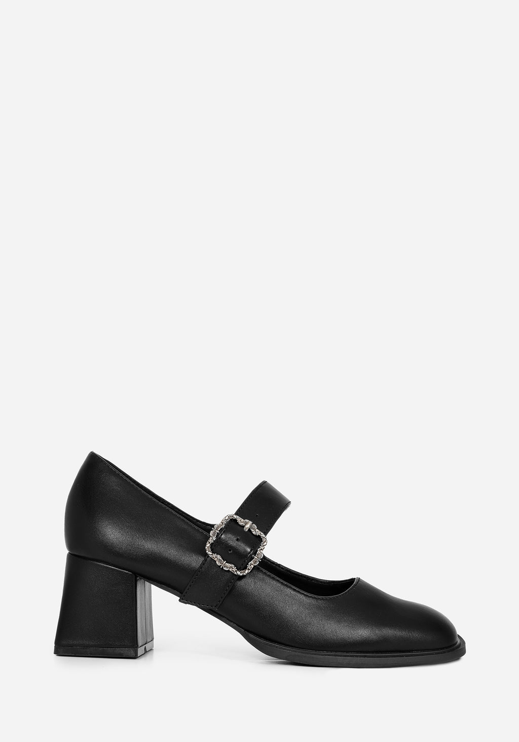 • Black Faux Leather Floral Buckle Mary Janes
