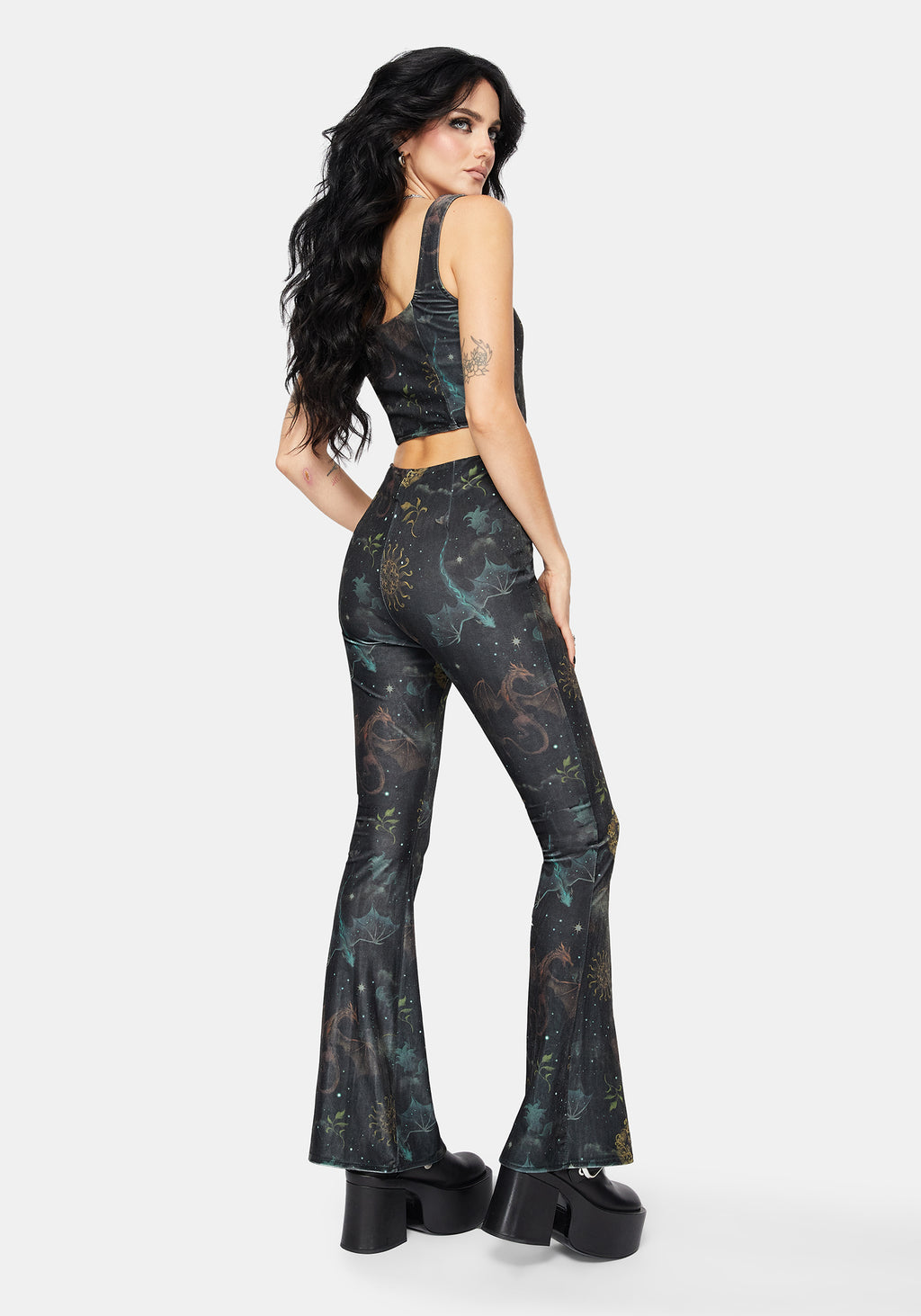 • Green Dragon & Celestial All-Over Print Flares
