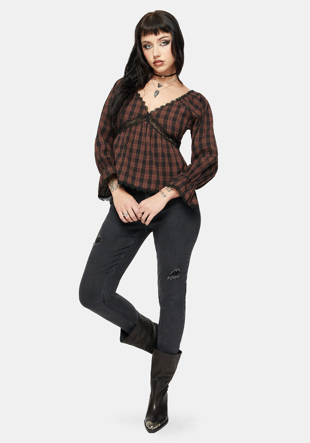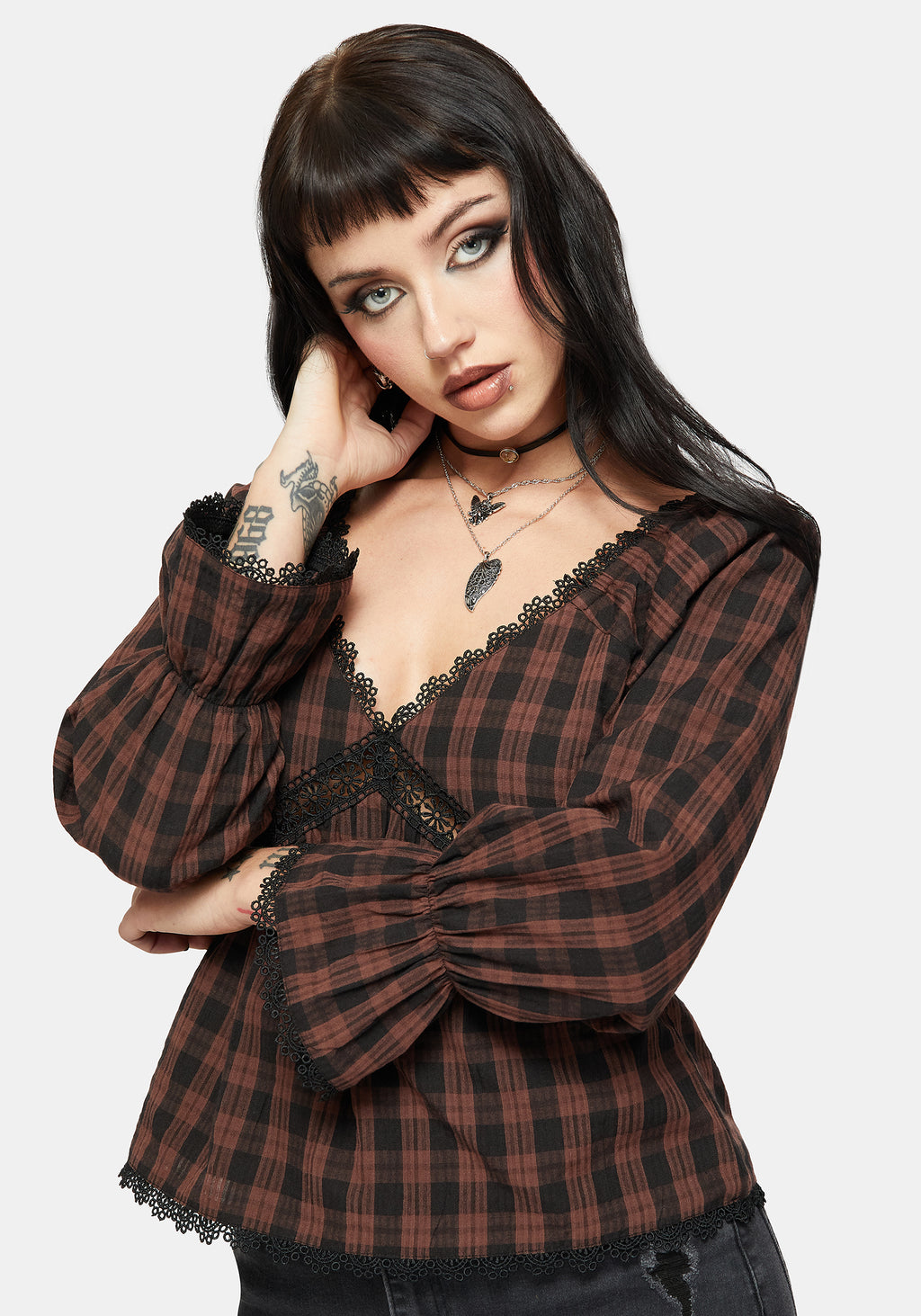 • Black & Brown Gingham Blouse