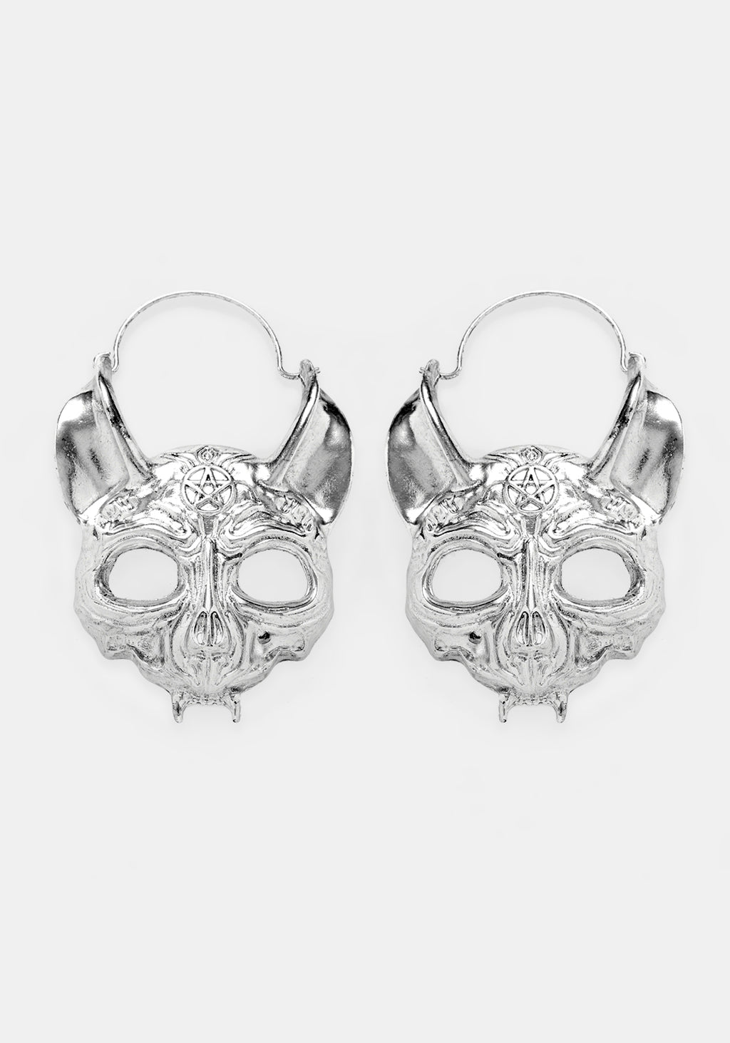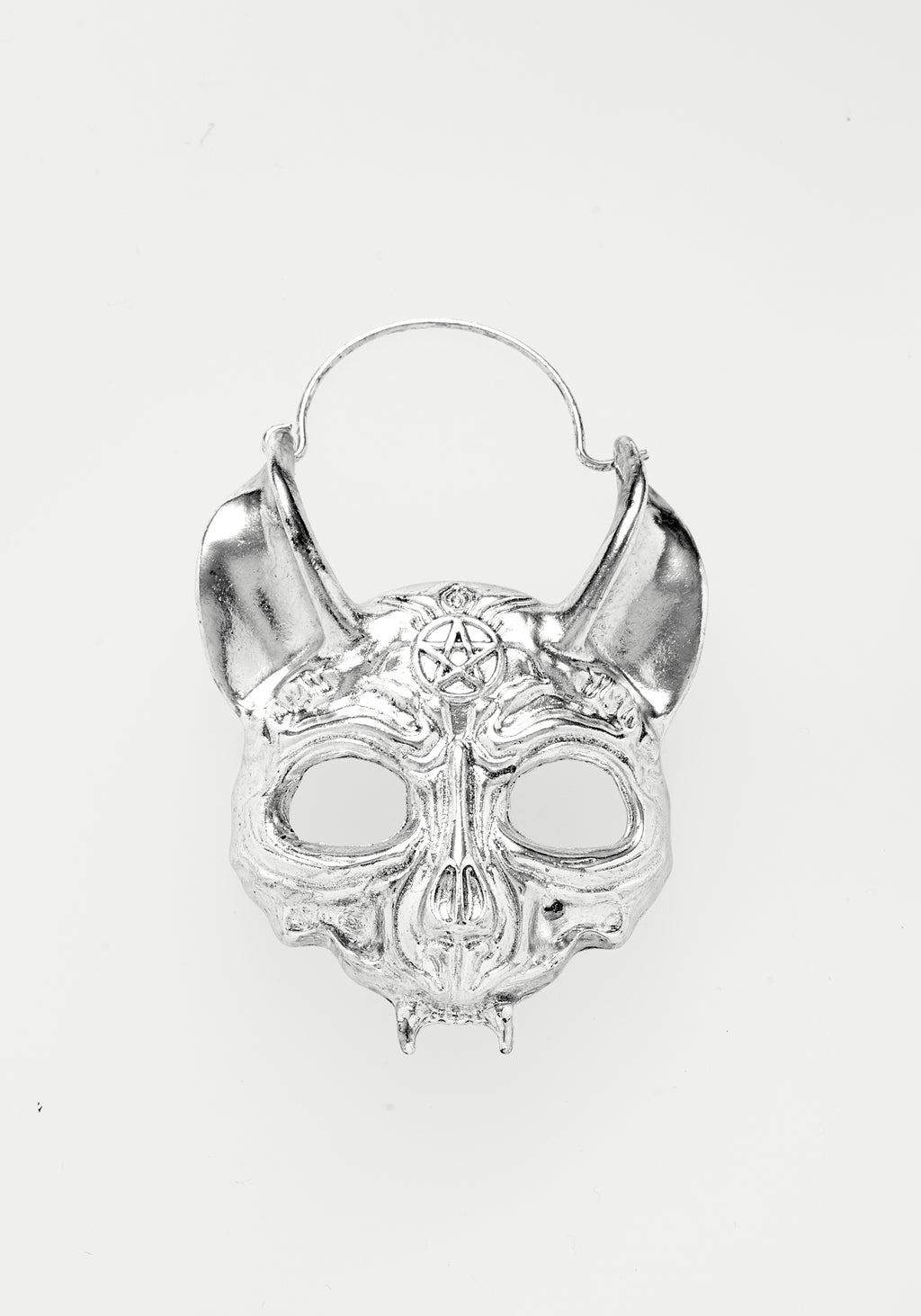 There is a tale from Japanese mythology that speaks of a shapeshifting demonic entity which at first looks like a harmless domestic cat, but can take the form of a beloved to trick unsuspecting victims to slowly drain their lifeforce to leave behind an empty husk. Pretty metal, right? These moulded vampiric cat head earrings (probably) don’t have the same energy-sucking capabilities, but they’ll still bewitch passers-by with their unnerving empty stare, sharpened fangs, and etched pentacle symbol. Hook them through your lobes with their pin catch posts anytime you need statement earrings, and take what you want.
