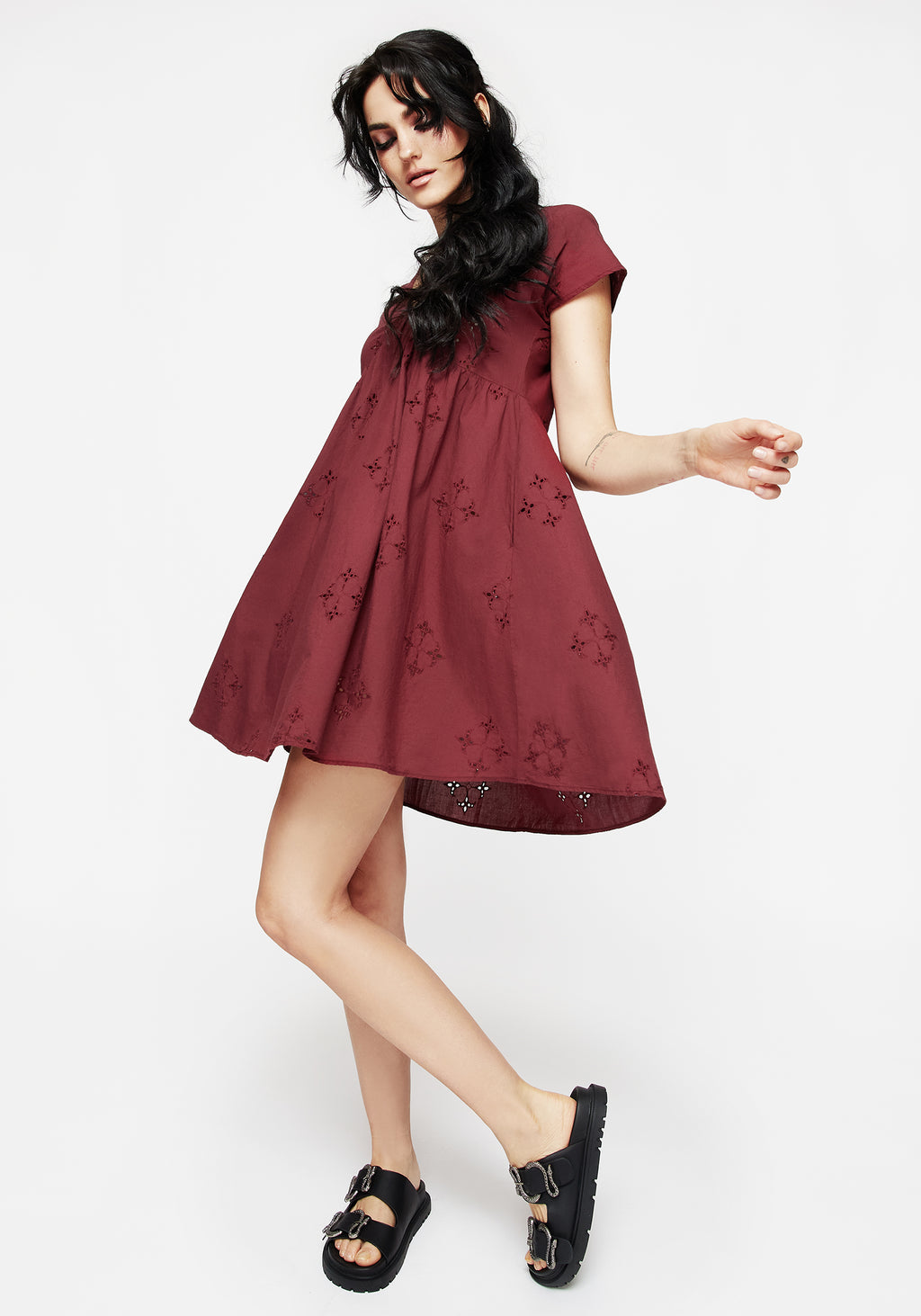 • Burgundy Crux Broderie Smock Mini Dress