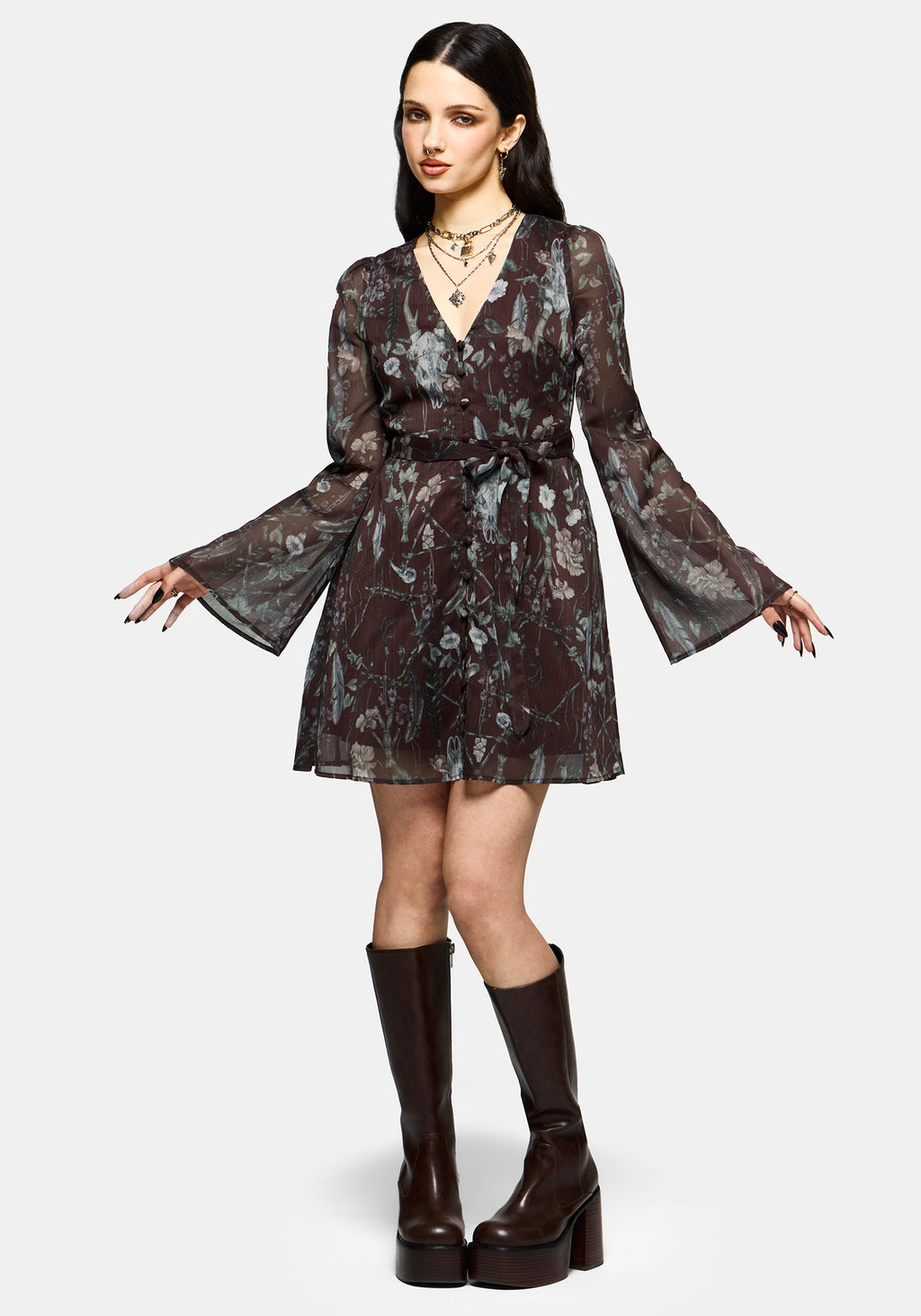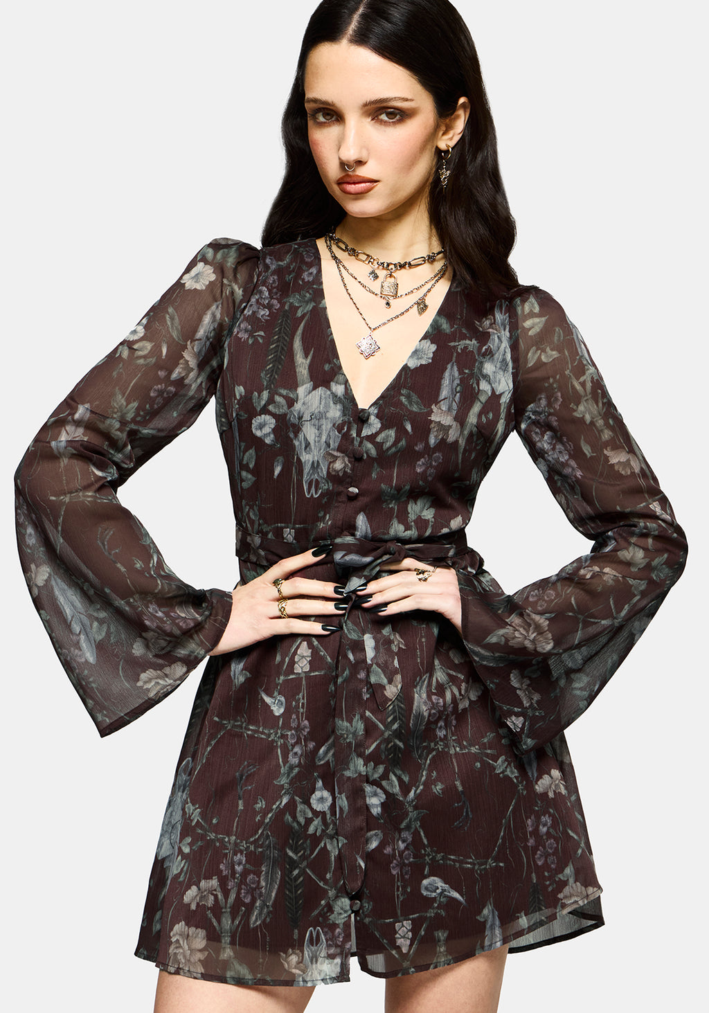 • Garden Floral and Skull Print