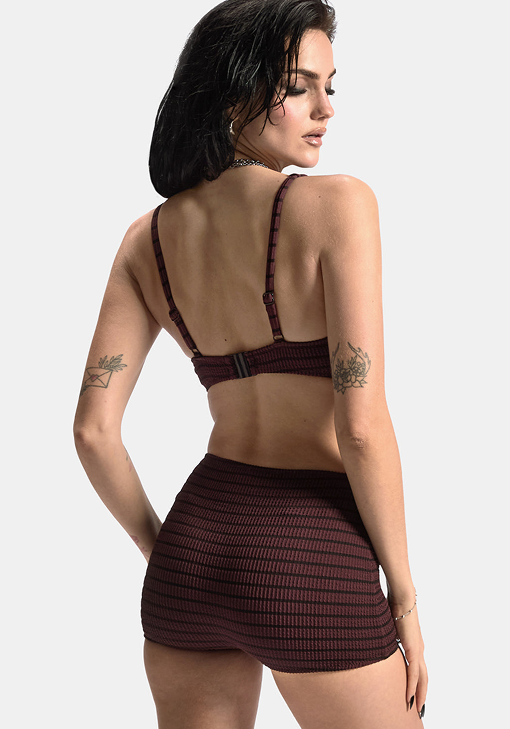 • Burgundy Striped Bikini Top