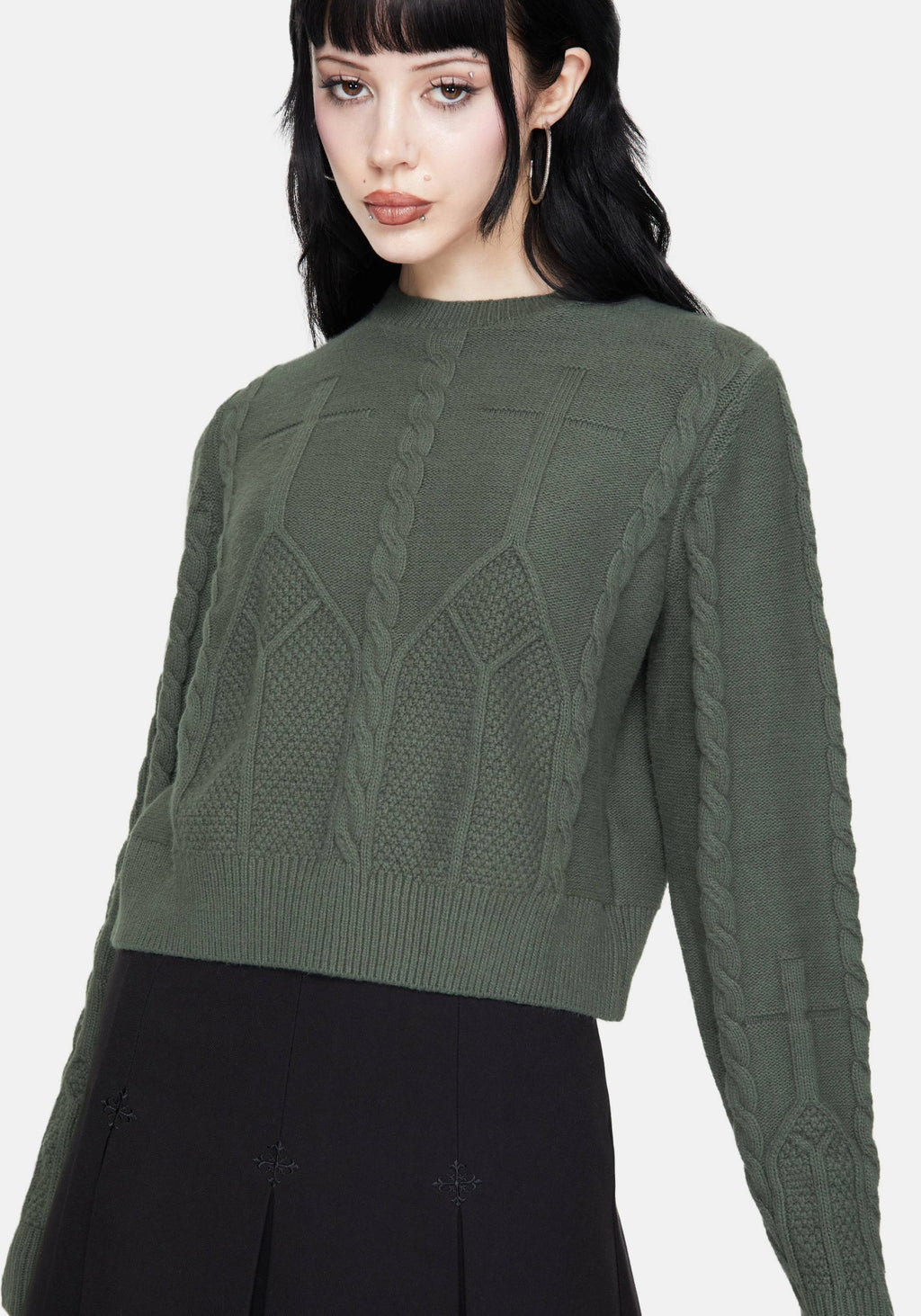 • Green Cropped Cable Knit Jumper