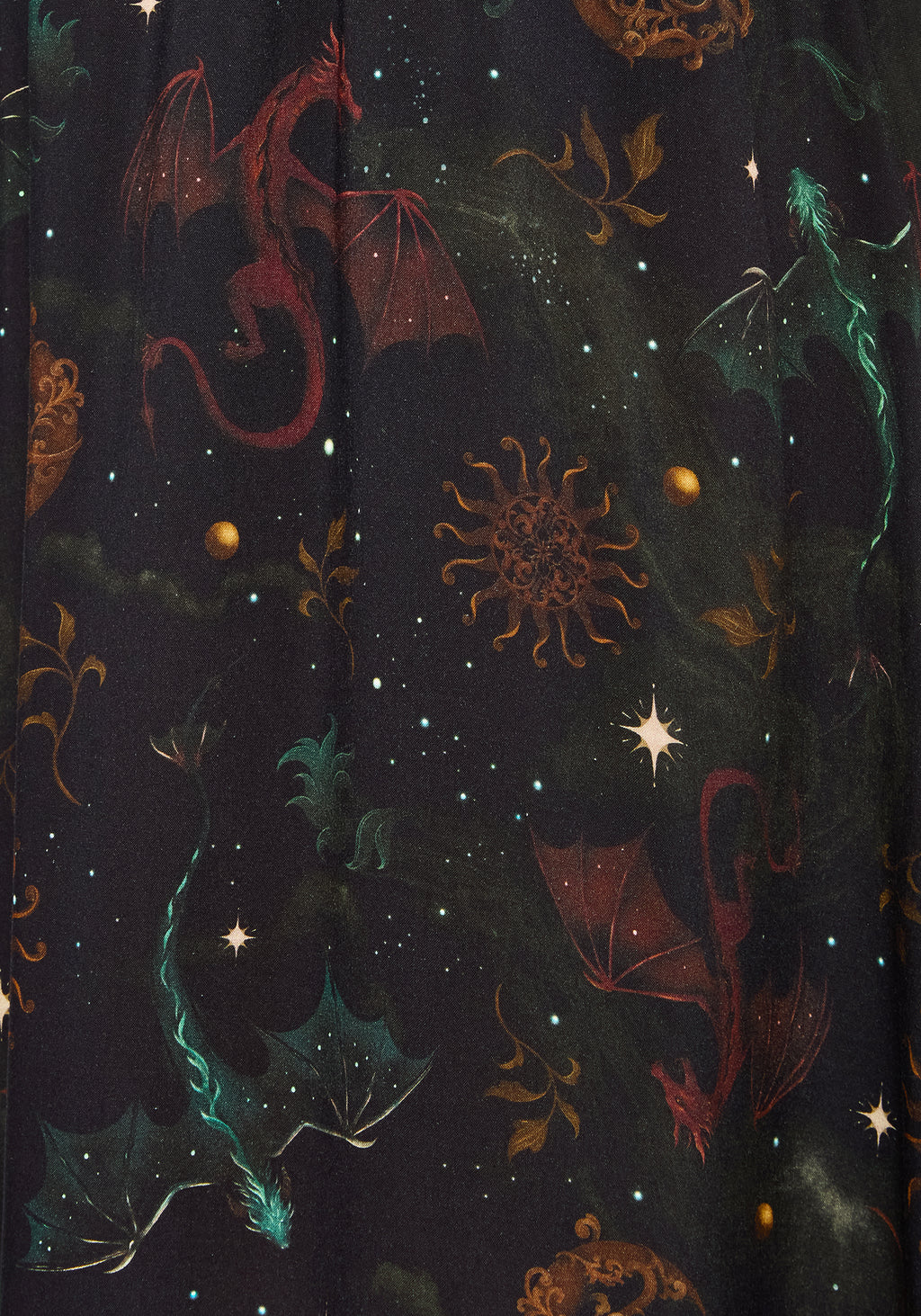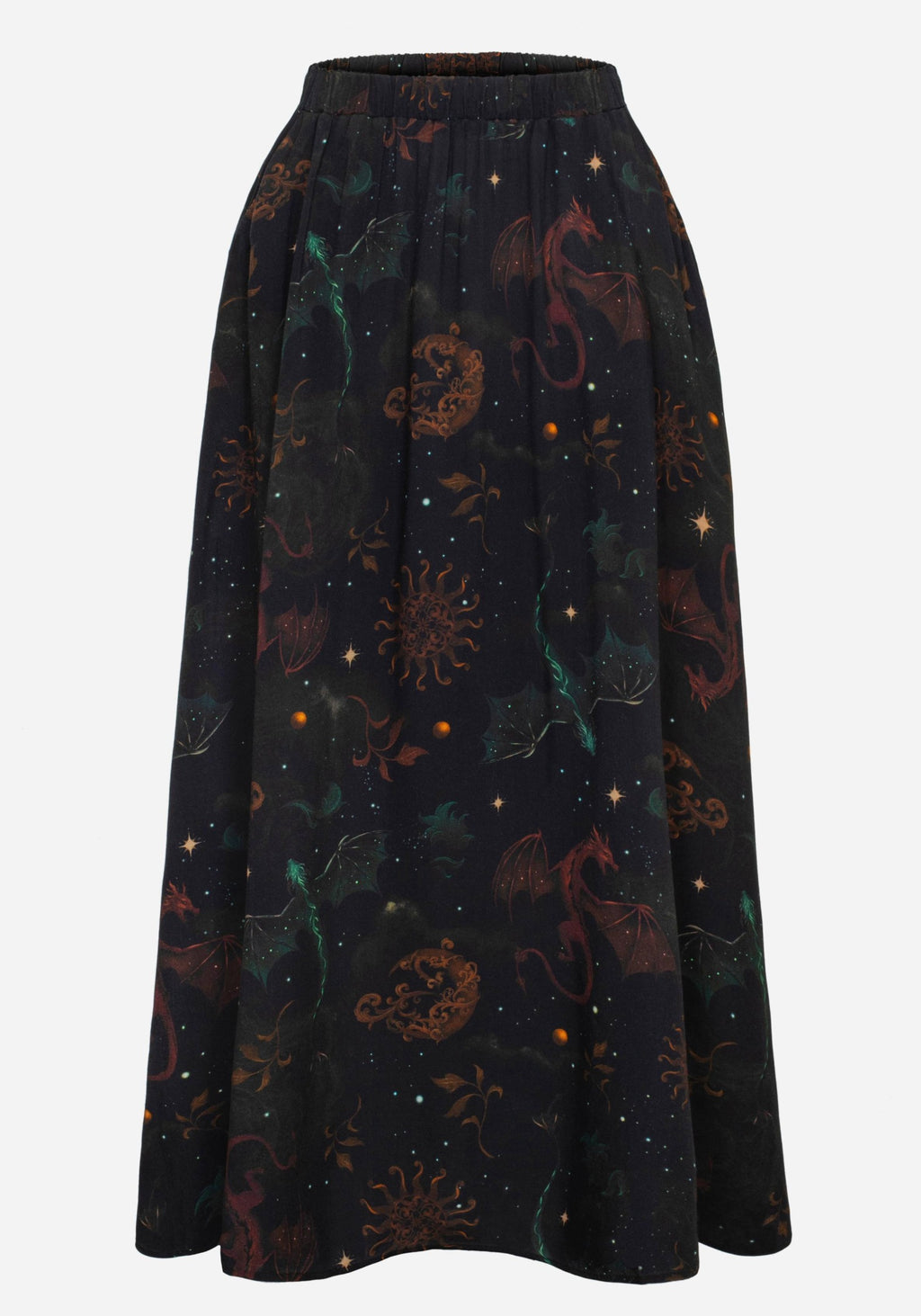• Black Dragon & Celestial All-Over Print Midi Skirt