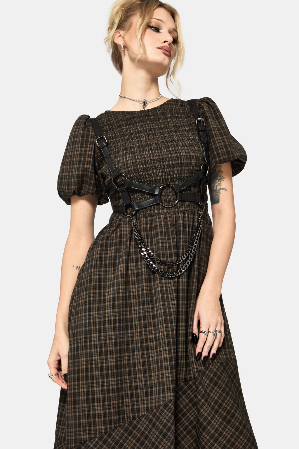 • Brown & Cream Check Midi Dress