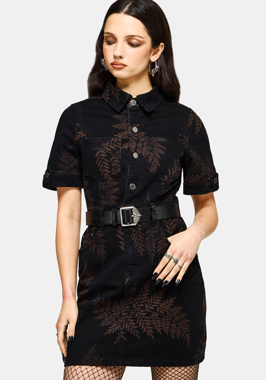• Black Denim Mini Shirt Dress