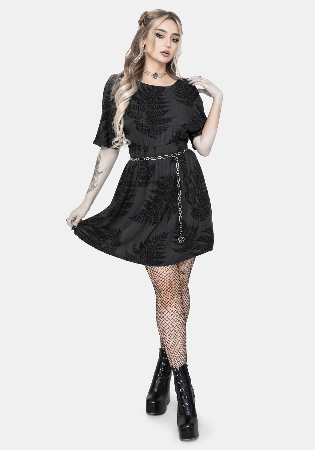 • Fern All-Over Print Grey Mini Dress