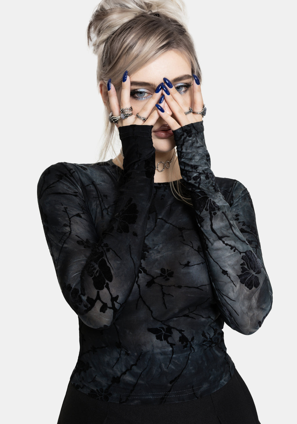 • Blue Black Washed Mesh Top